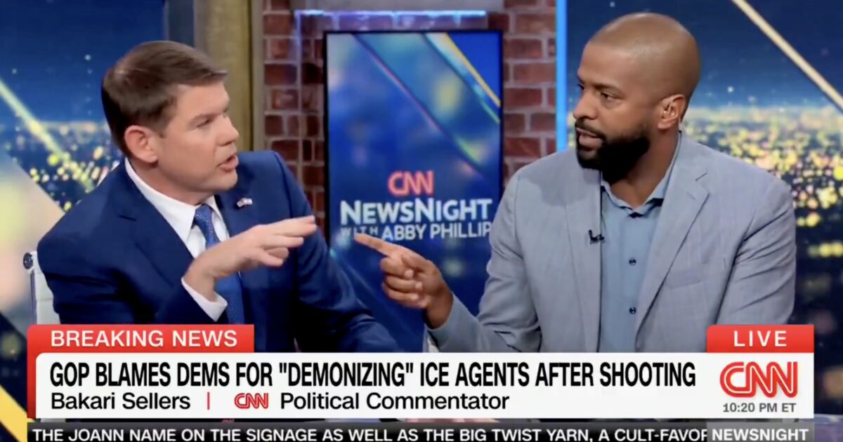 I’m sorry. I have a friend that got shot and assassinated two weeks ago. I’m a little bit hot on this one because you guys have been irresponsible. First of all, it is coming out from people on the left. One second. Gavin Newsom went on TV last night—hold on—Gavin Newsom went on TV last night and disparaged ICE agents, attacked ICE agents, said they’re authoritarians.Bakari Sellers: