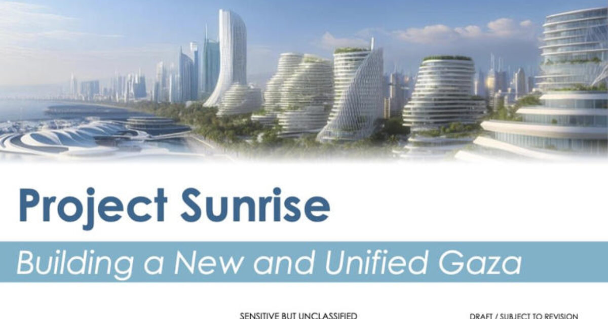 According to the presentation, Project Sunrise would convert Gaza’s devastated landscape into a modern coastal metropolis.